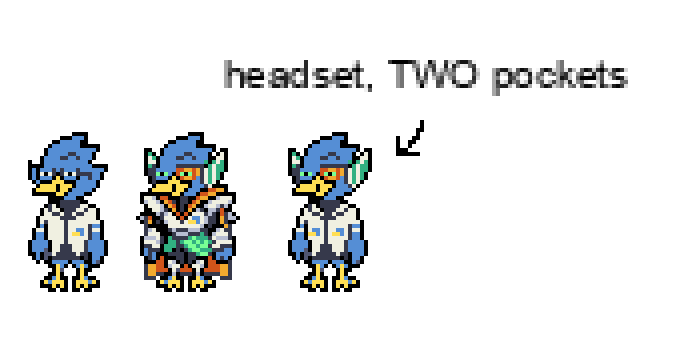 Initially I was trying to draw her sprite with her head facing straight-on, but it was ultimately lacking in personality.