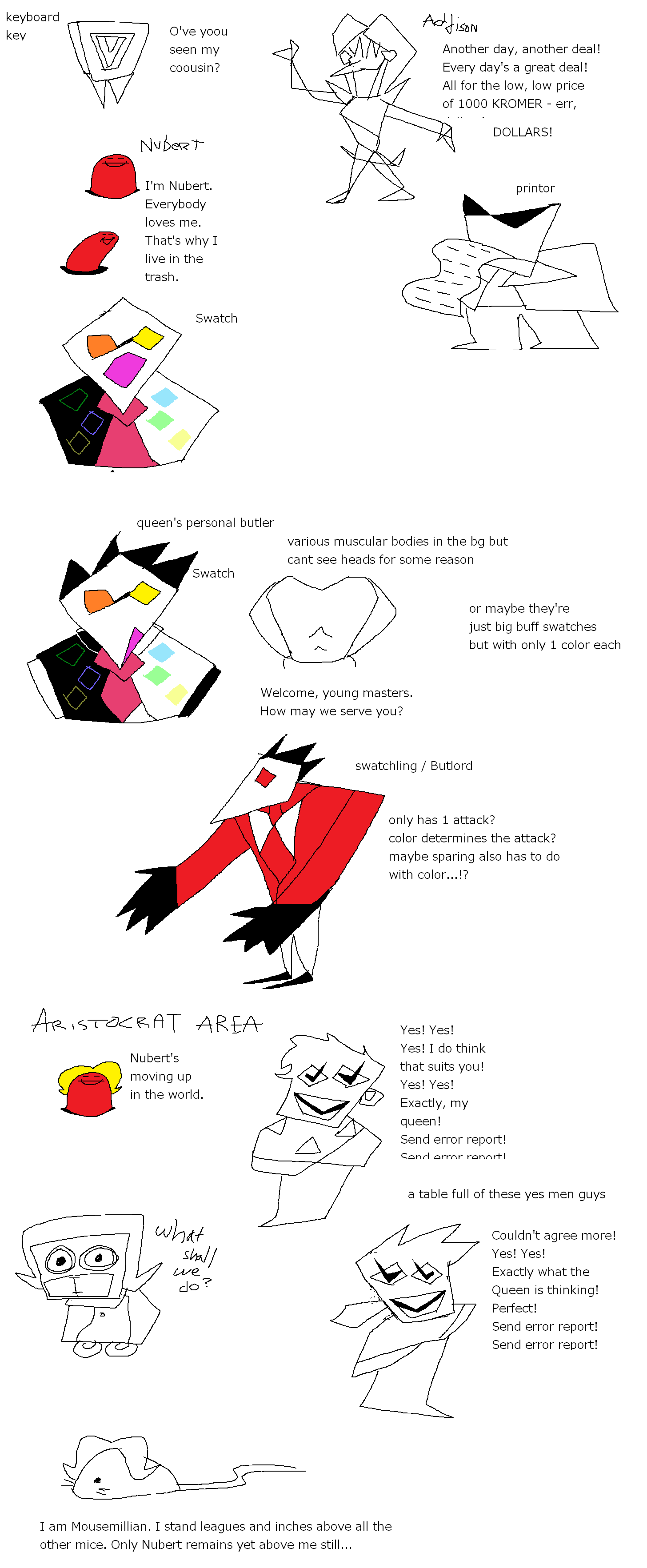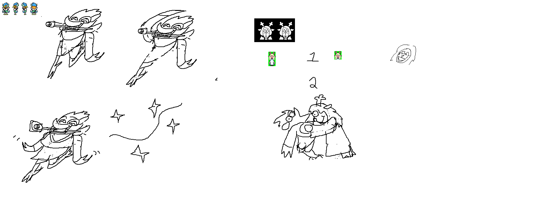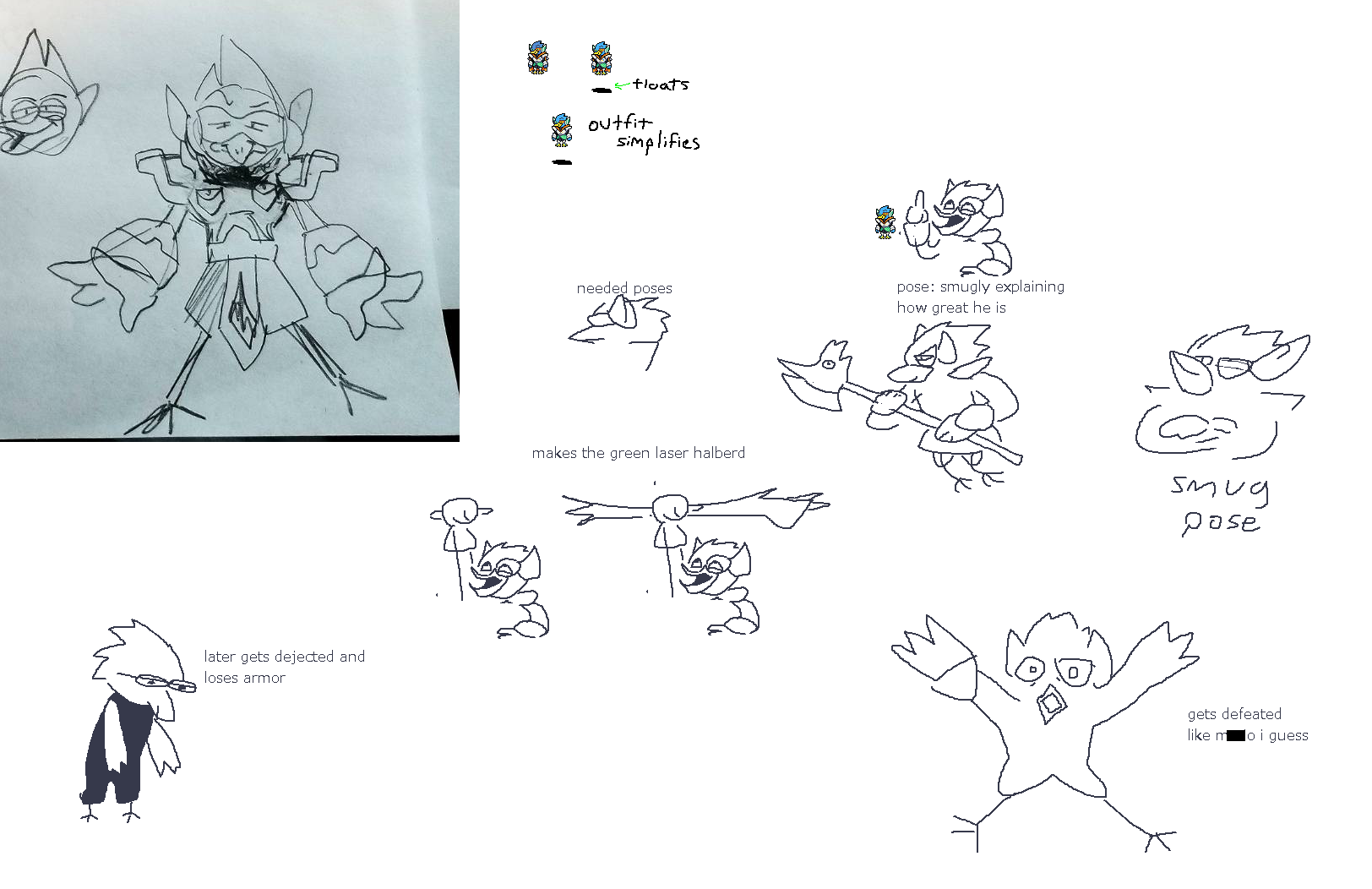 Swatch's initial art... what was going on there? By the way, I'm pretty sure his overworld sprite was based off of my concept art instead of Gigi's redrawn version, so that's why it looked a bit off in the Cafe.