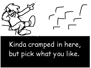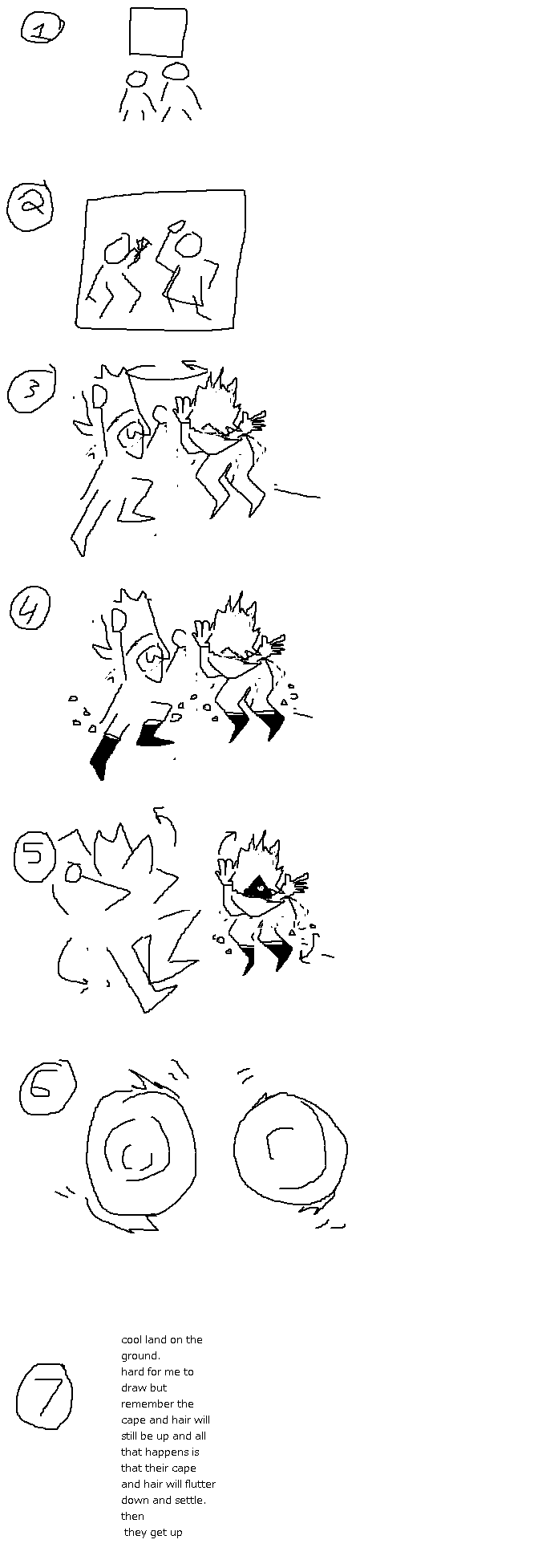 01:Hacker Guy (idk what their name is), wants to discover the secrets of the world and has special abilities, though they aren't aware of them. "Hacks" by randomly smashing keys and even swinging their mouse around in the air, could keep escalating in silly ways.