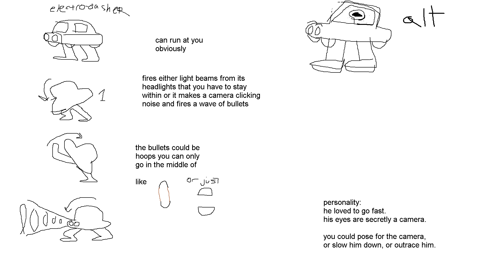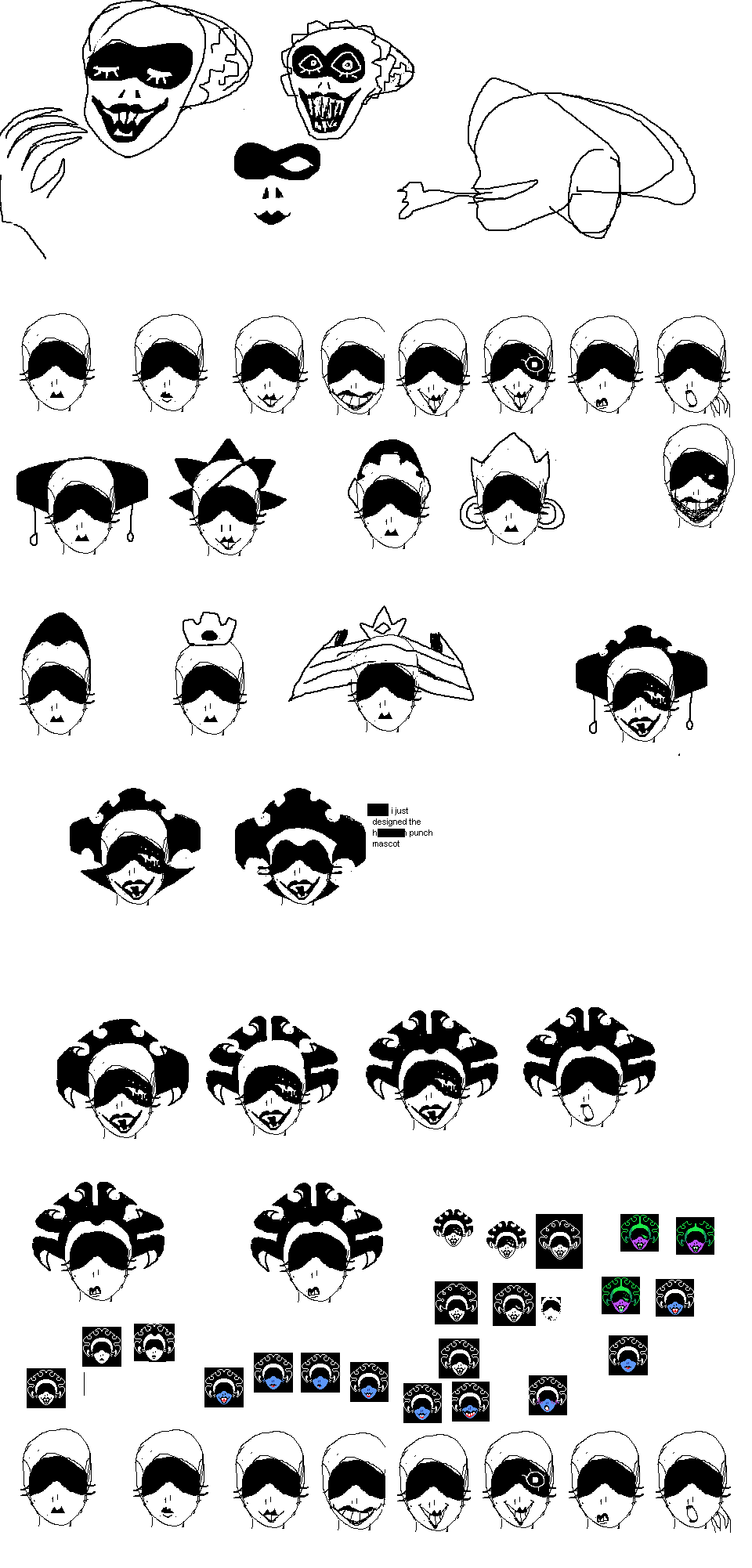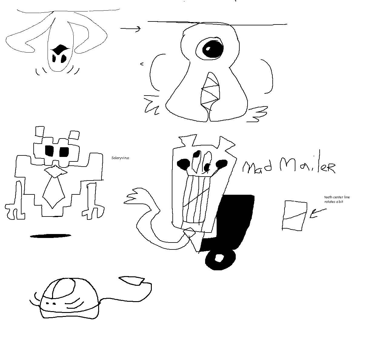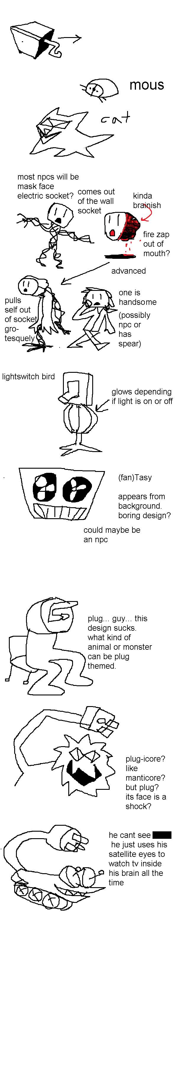 These are just sketches and not real designs so none of them got used. I really like the plug guy drawing lol.