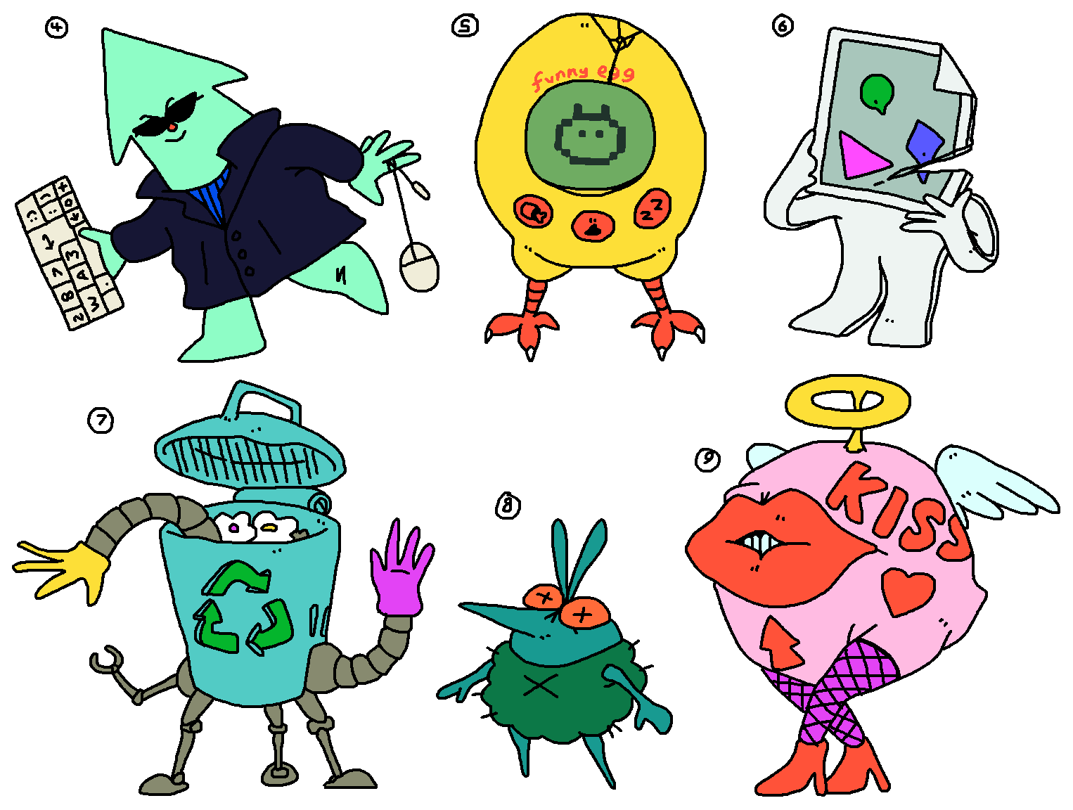 05:Funny Egg, their body contains a virtual pet. Can the fate of this pet be altered? Maybe not... Has an existential crisis if the pet dies, as their body is a battleground of life and death.